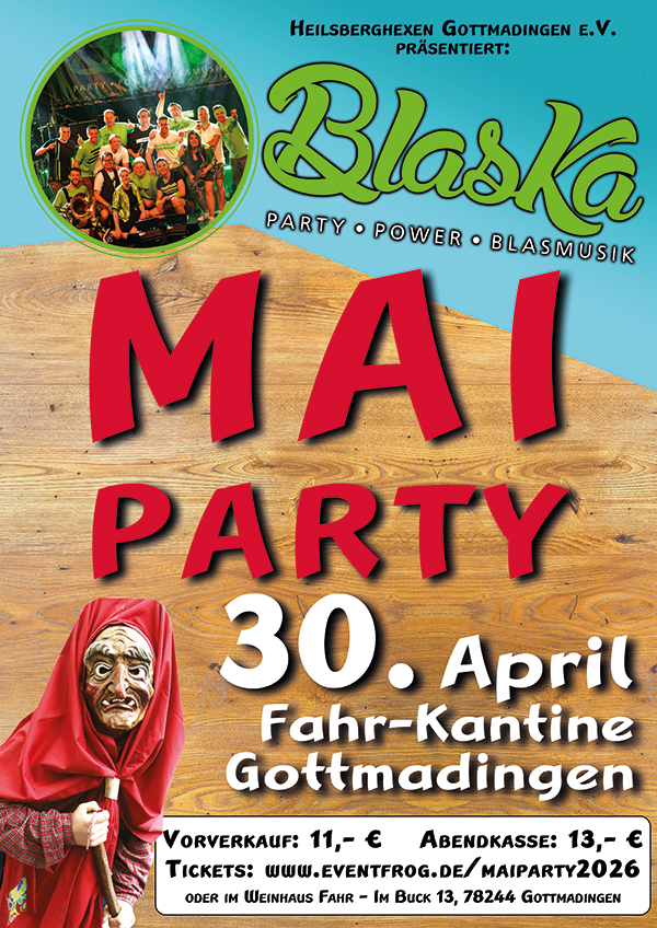 Unsere legendäre Maiparty mit BLASKA findet wieder statt am 30.04.2026 in der Fahrkantine Gottmadingen